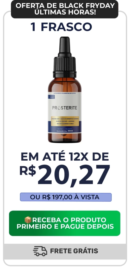 Prosterite apresenta fórmula natural e não apresenta efeitos colaterais. O produto é indicado para homens acima dos 30 anos com sintomas de ргóstаtа ou que deseja prevenir o câncer de ргóstаtа