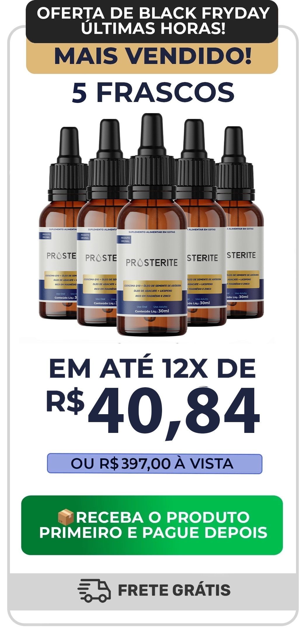 No PROSTERITE, a sua segurança vem em primeiro lugar. Por isso, oferecemos a opção de pagamento somente na entrega: você recebe o produto em mãos, confere tudo com tranquilidade e só então realiza o pagamento.
